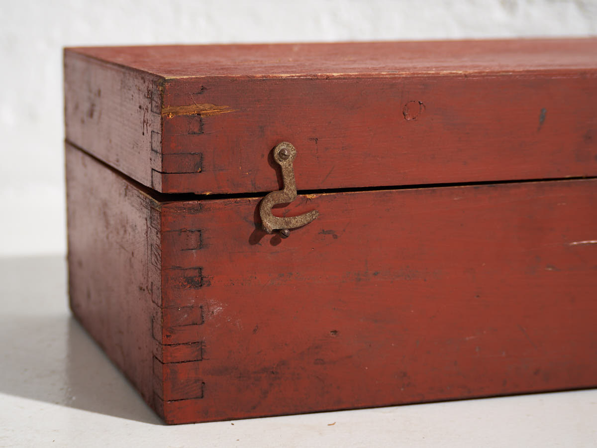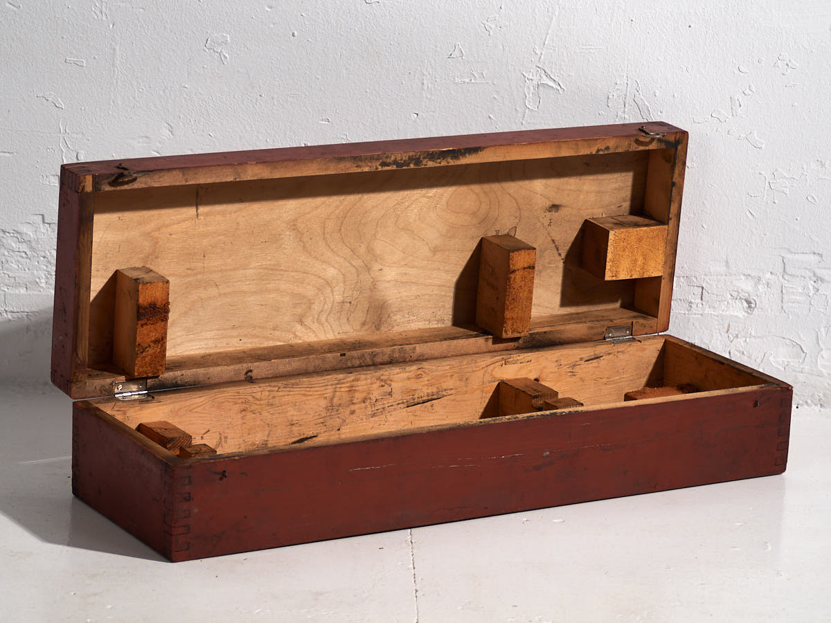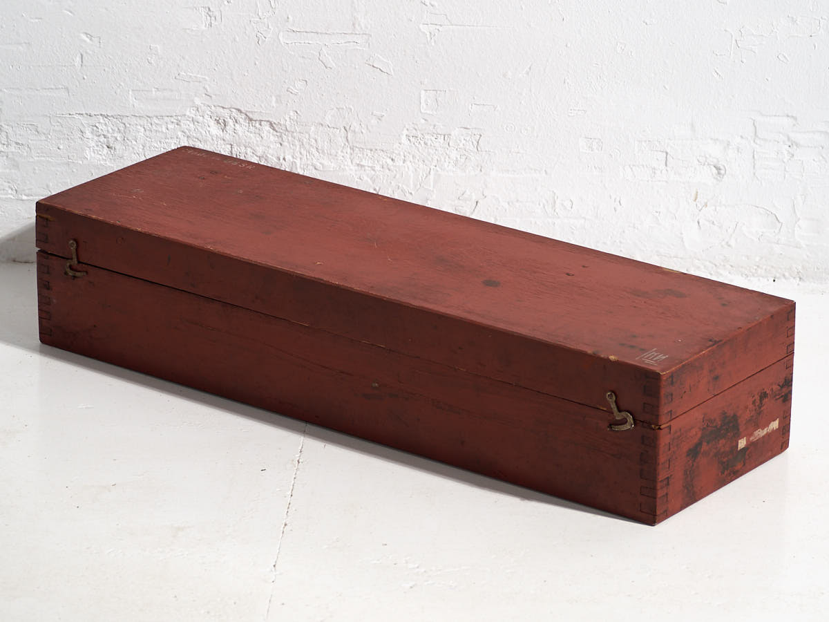 Estuche vintage de madera color rojo (Polonia, c.1940). Estuche de color rojo construido con madera maciza de pino.