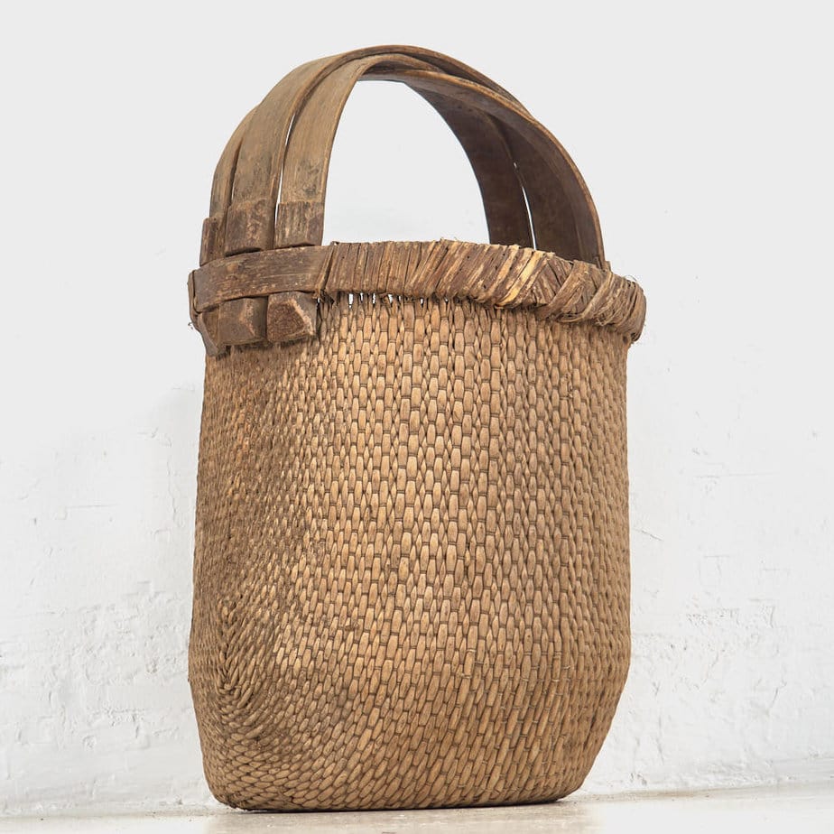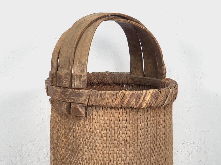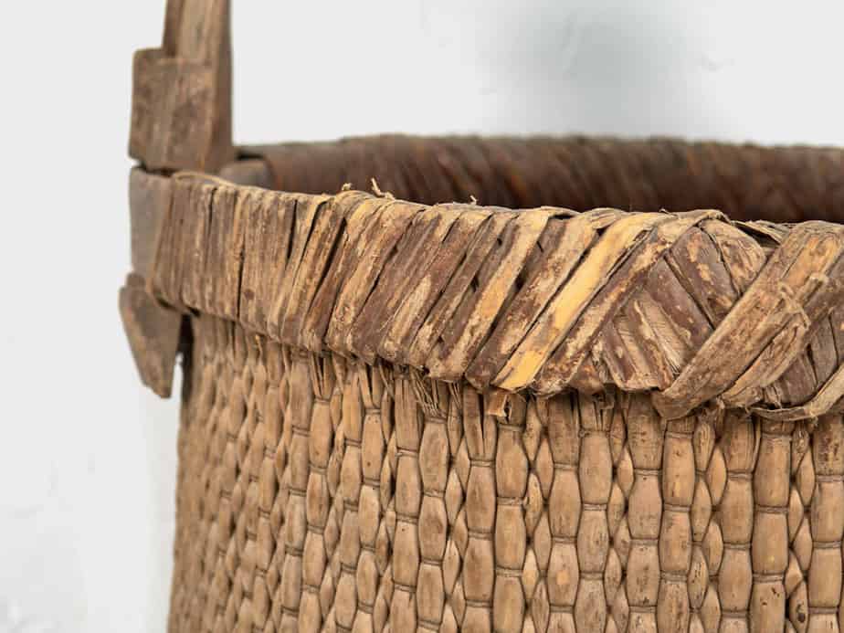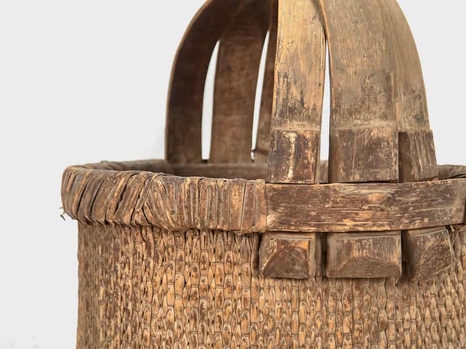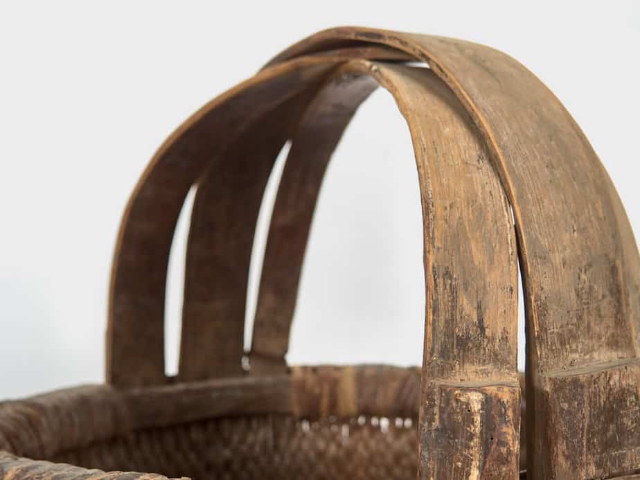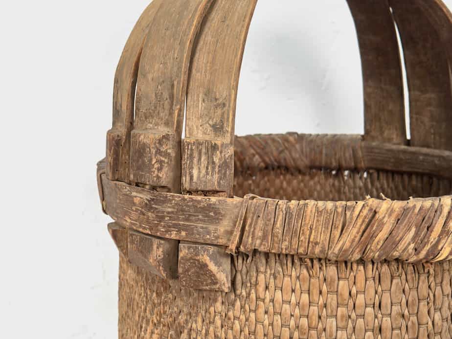 Nuestra cesta de sauce antigua fue usada antiguamente como cesta de trabajo para las tareas agrícolas como la recolección del arroz. Tiene una antigüedad estimada de unos 120 años. Fue recuperada de una casa antigua en China.