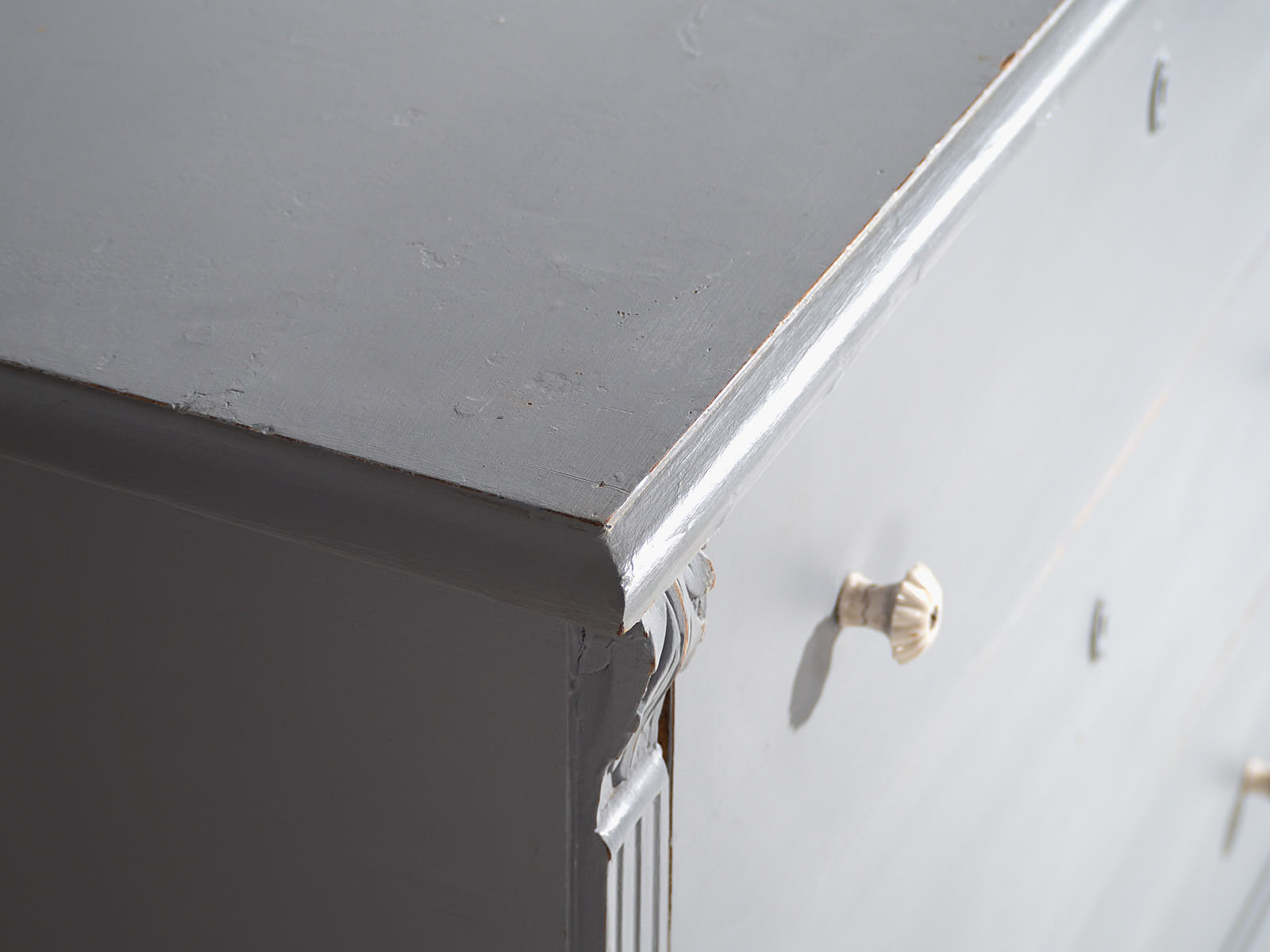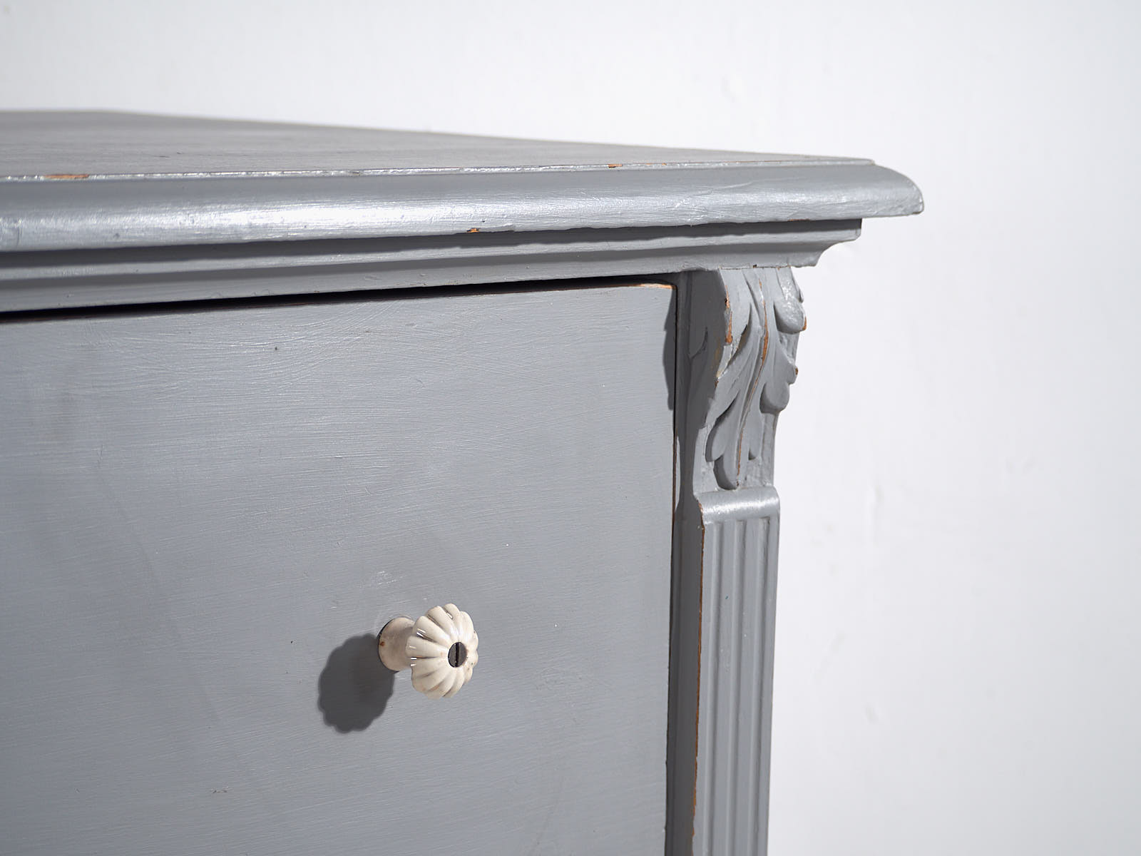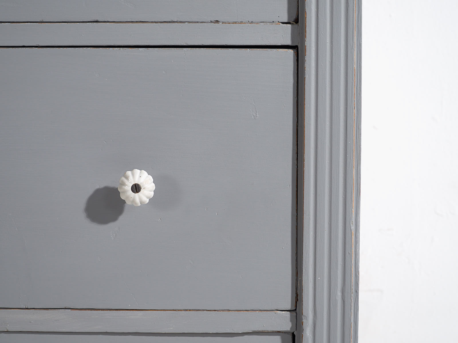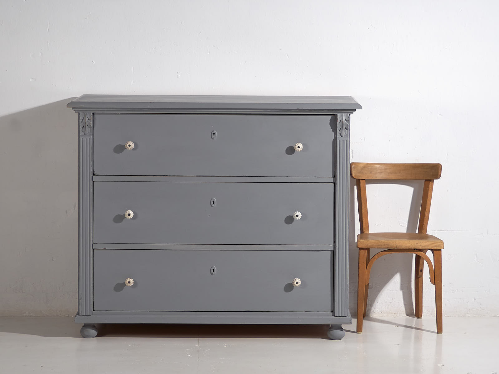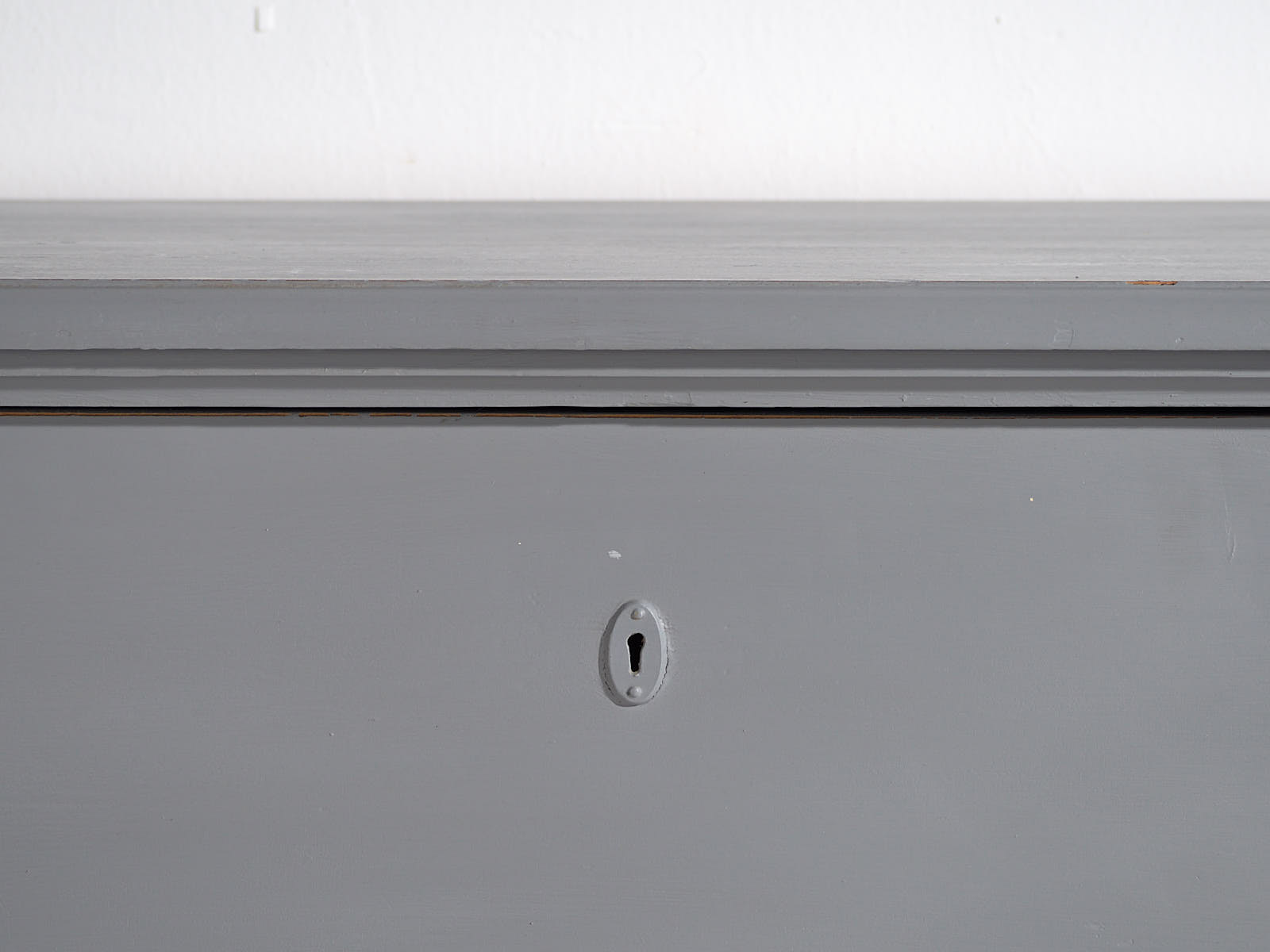 Dale un punto de originalidad a tu casa con esta pieza única, que se fusiona con el estilo contemporáneo aportando personalidad a tu casa. Esta cómoda gris de madera puede combinarla con alguno de nuestros bancos o con nuestros aparadores antiguos disponibles.