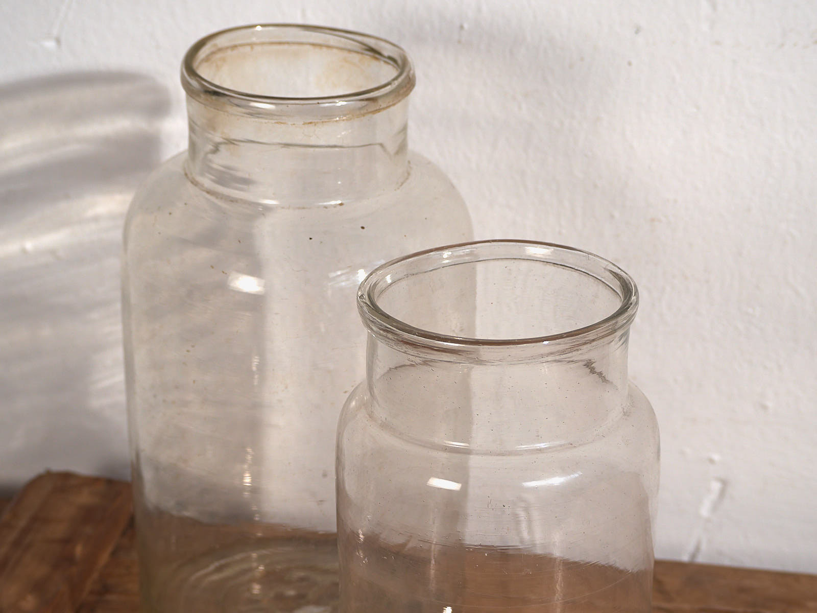 Dale un punto de originalidad a tu casa con estas piezas únicas, que se fusionan con el estilo contemporáneo aportando personalidad a tu casa. Este conjunto de antiguos jarrones de vidrio puede combinarlo con alguna de nuestras cómodas o con nuestras sillas antiguas disponibles.