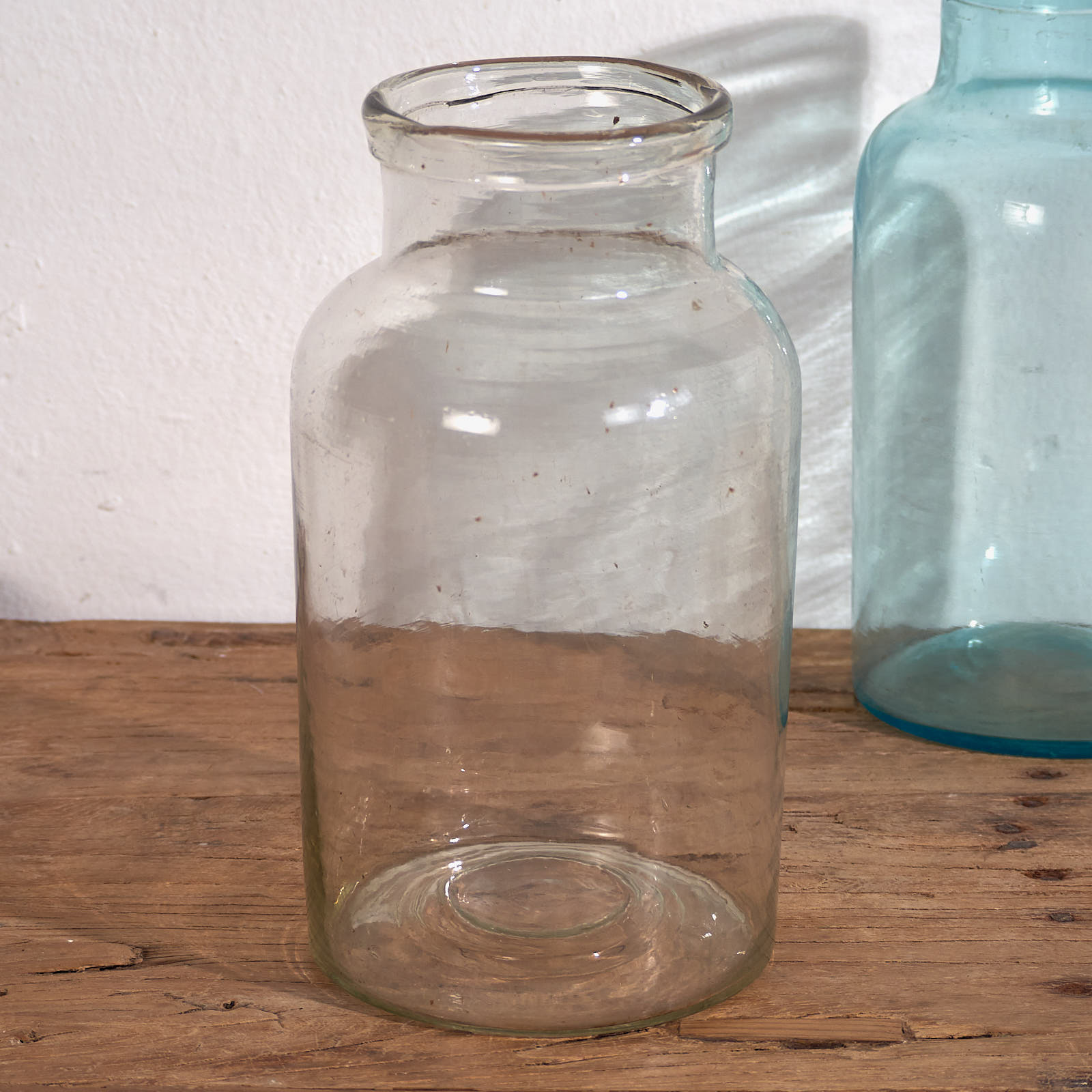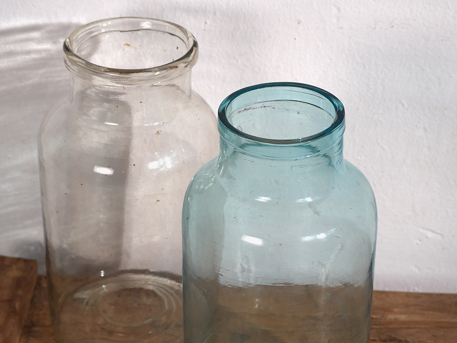 Dale un punto de originalidad a tu casa con estas piezas únicas, que se fusionan con el estilo contemporáneo aportando personalidad a tu casa. Este conjunto de botellas transparentes antiguas puede combinarlo con alguna de nuestras cómodas o con nuestras sillas antiguas disponibles.