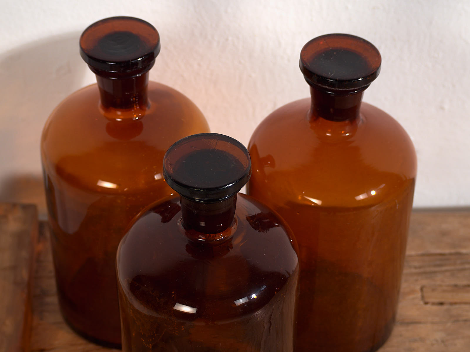 Frascos pequeños de farmacia antiguos (c.1920). Conjunto de 3 piezas #61