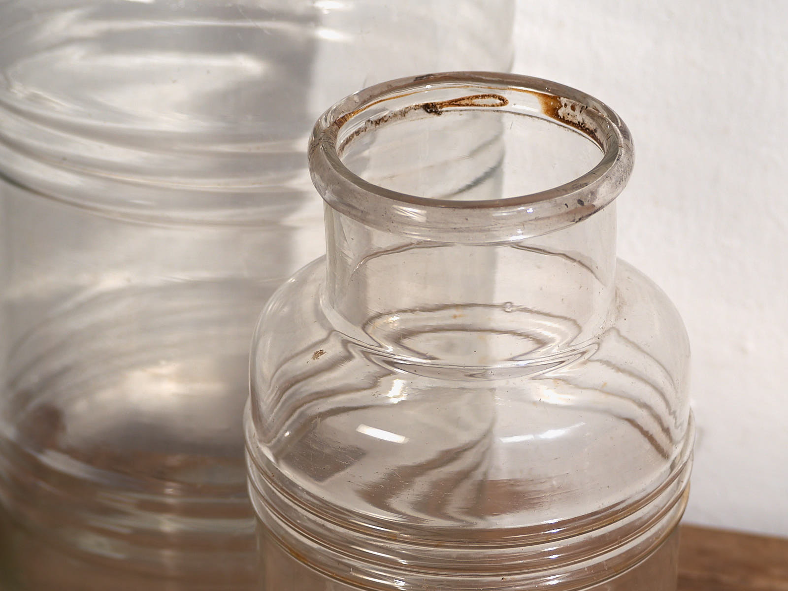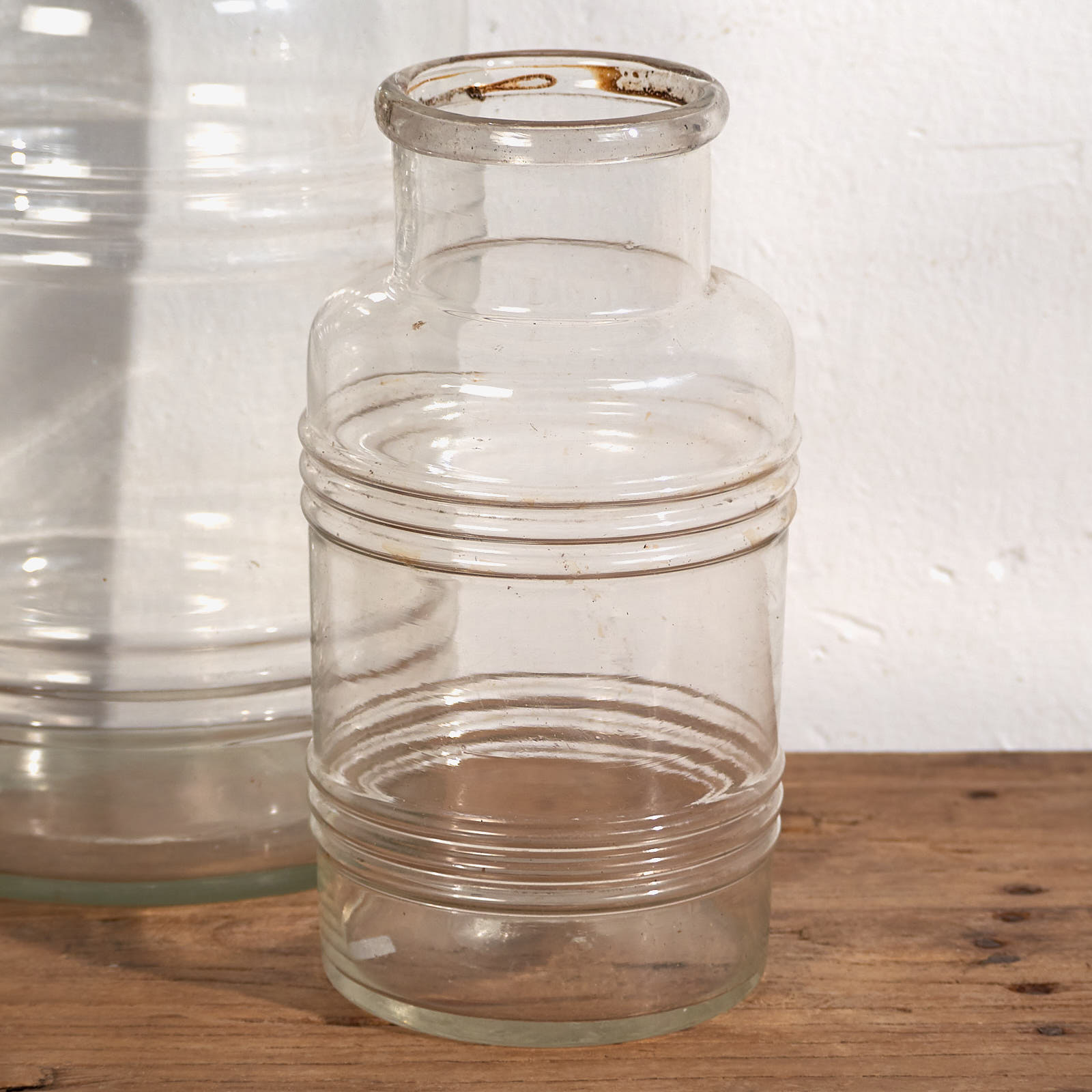 Dale un punto de originalidad a tu casa con estas piezas únicas, que se fusionan con el estilo contemporáneo aportando personalidad a tu casa. Este conjunto de frascos transparentes puede combinarlo con alguna de nuestras cómodas o con nuestras sillas antiguas disponibles.