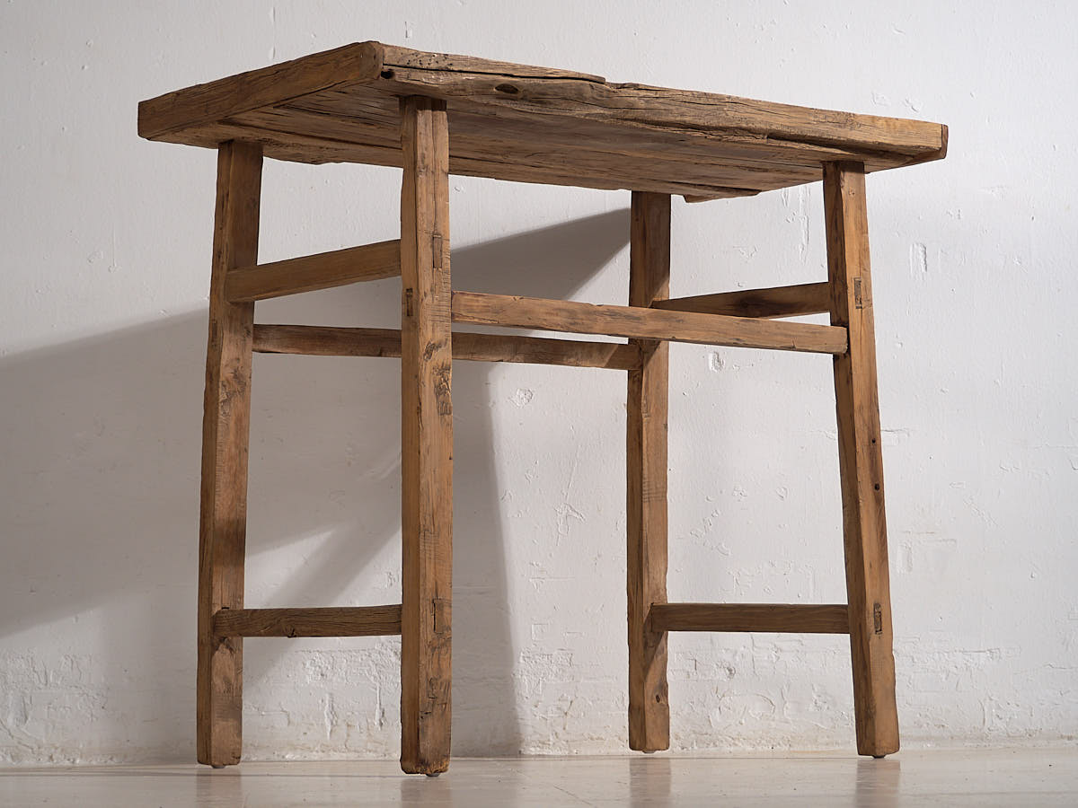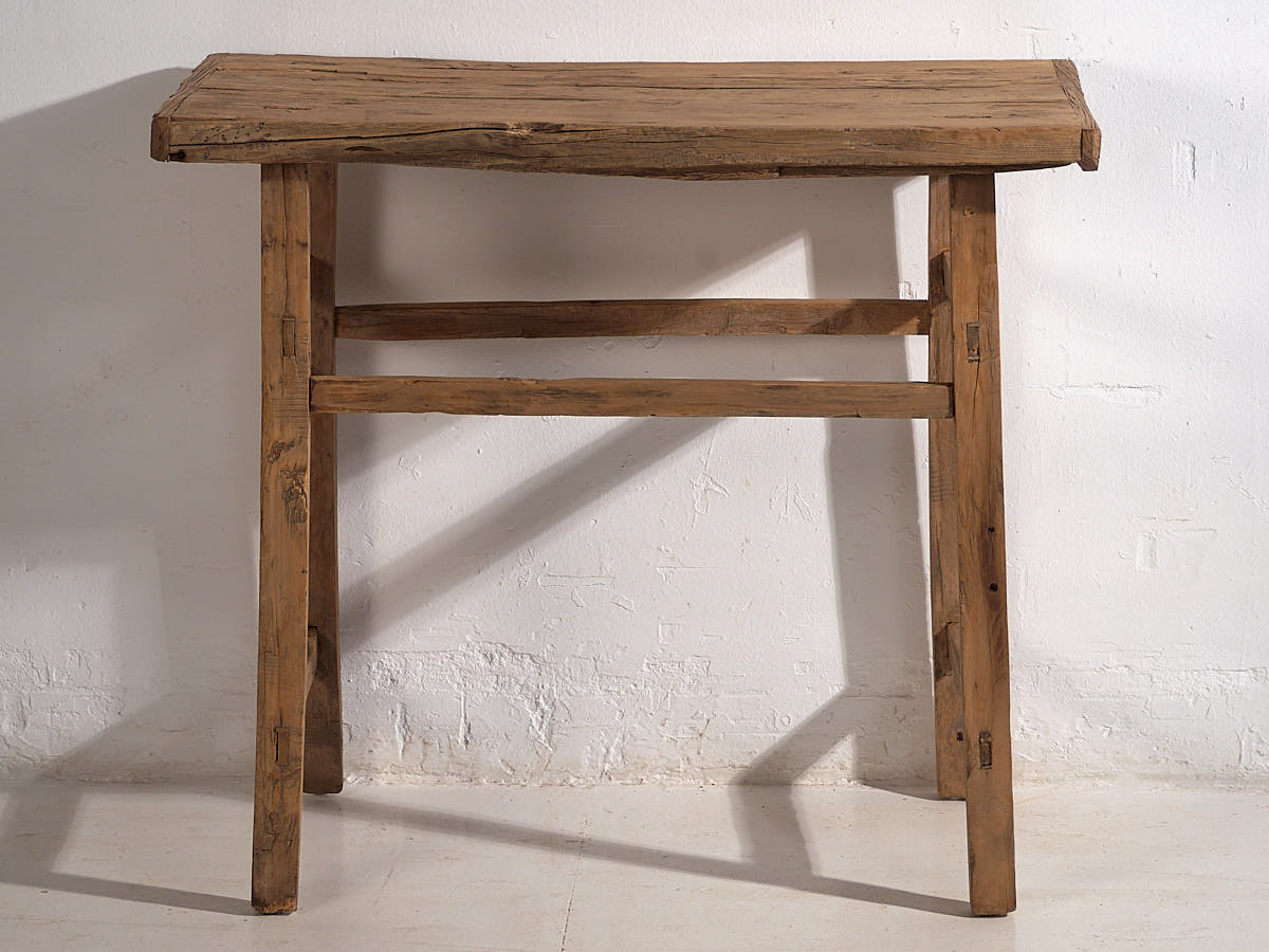 Dale un punto de originalidad a tu casa con una pieza única, que se fusiona con el estilo contemporáneo aportando personalidad a tu casa. Esta mesa consola de madera puede combinarla con alguno de nuestros baúles o con alguna de nuestras damajuanas y frascos antiguos como complemento perfecto.