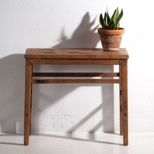 Dale un punto de originalidad a tu casa con una pieza única, que se fusiona con el estilo contemporáneo aportando personalidad a tu casa. Esta mesa consola de madera puede combinarla con alguno de nuestros bancos o con nuestros armarios antiguos como complemento perfecto.