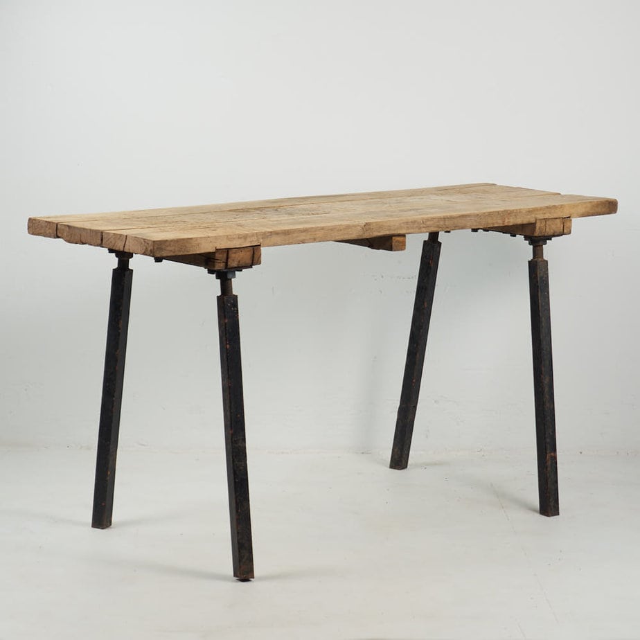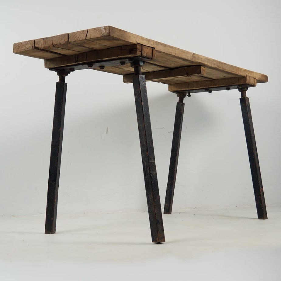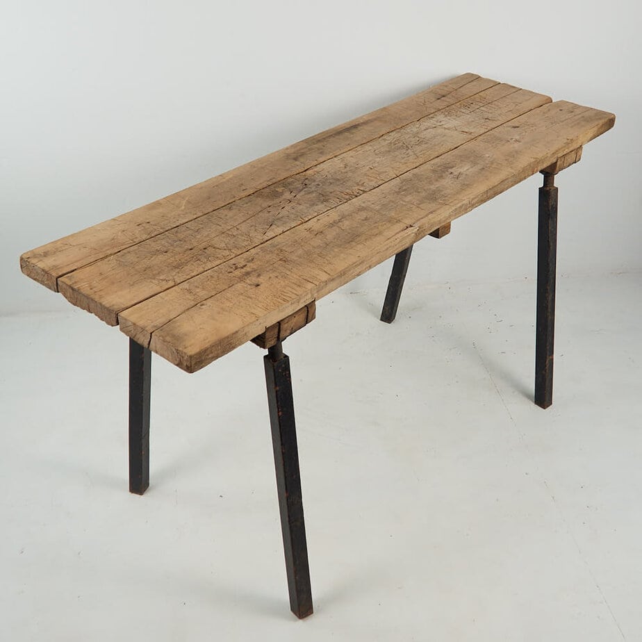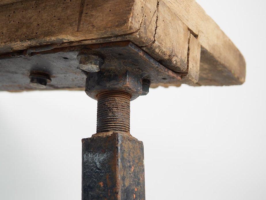 Antigua mesa de trabajo de madera maciza y hierro (c.1920).