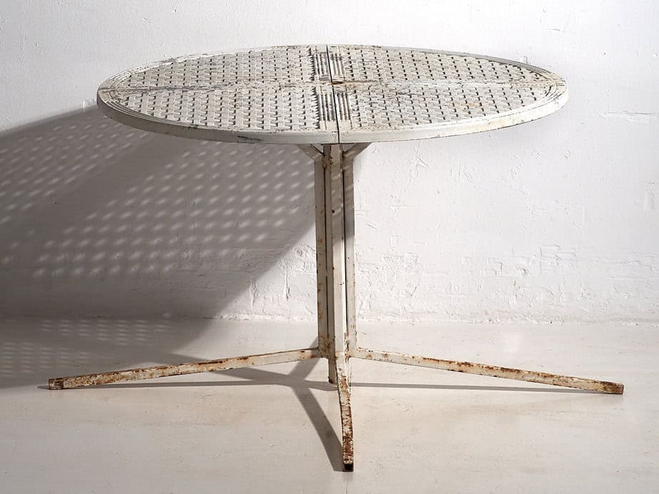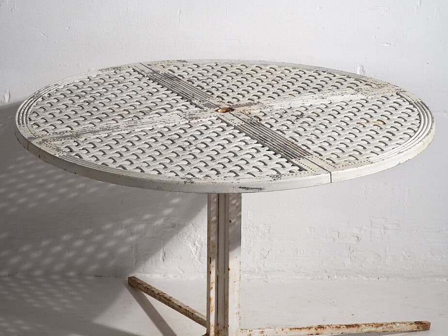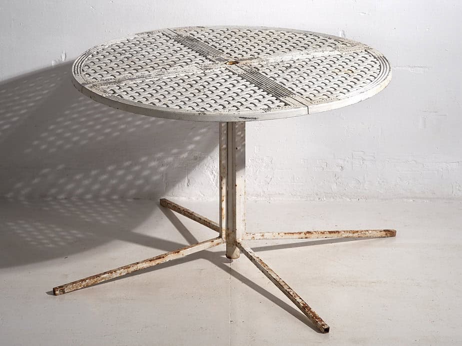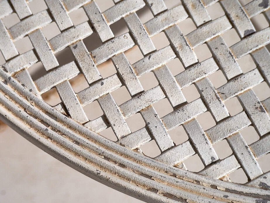 Nuestra mesa redonda blanca antigua es una pieza única que destaca por: