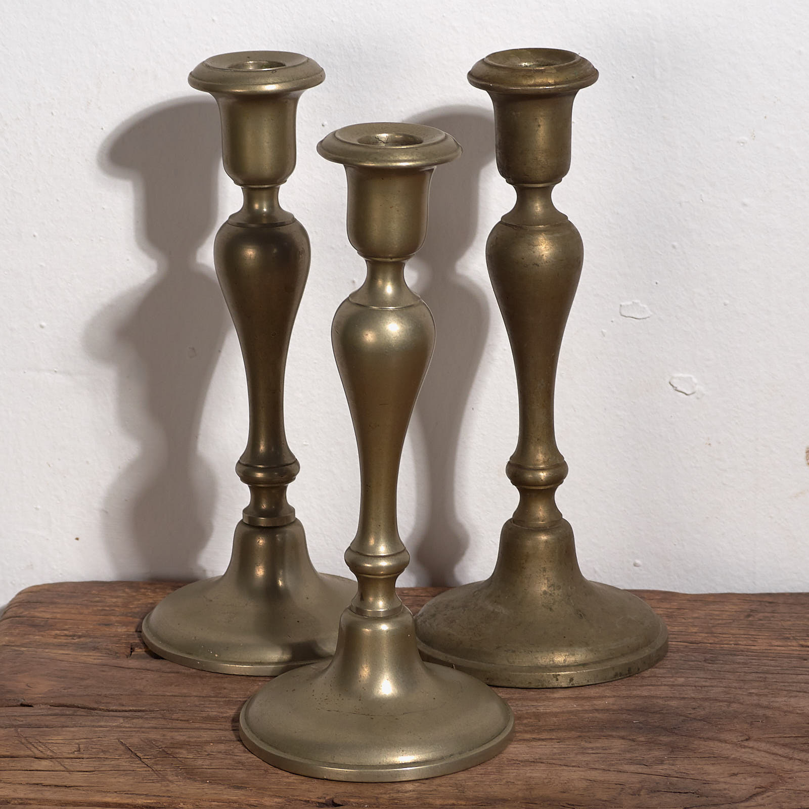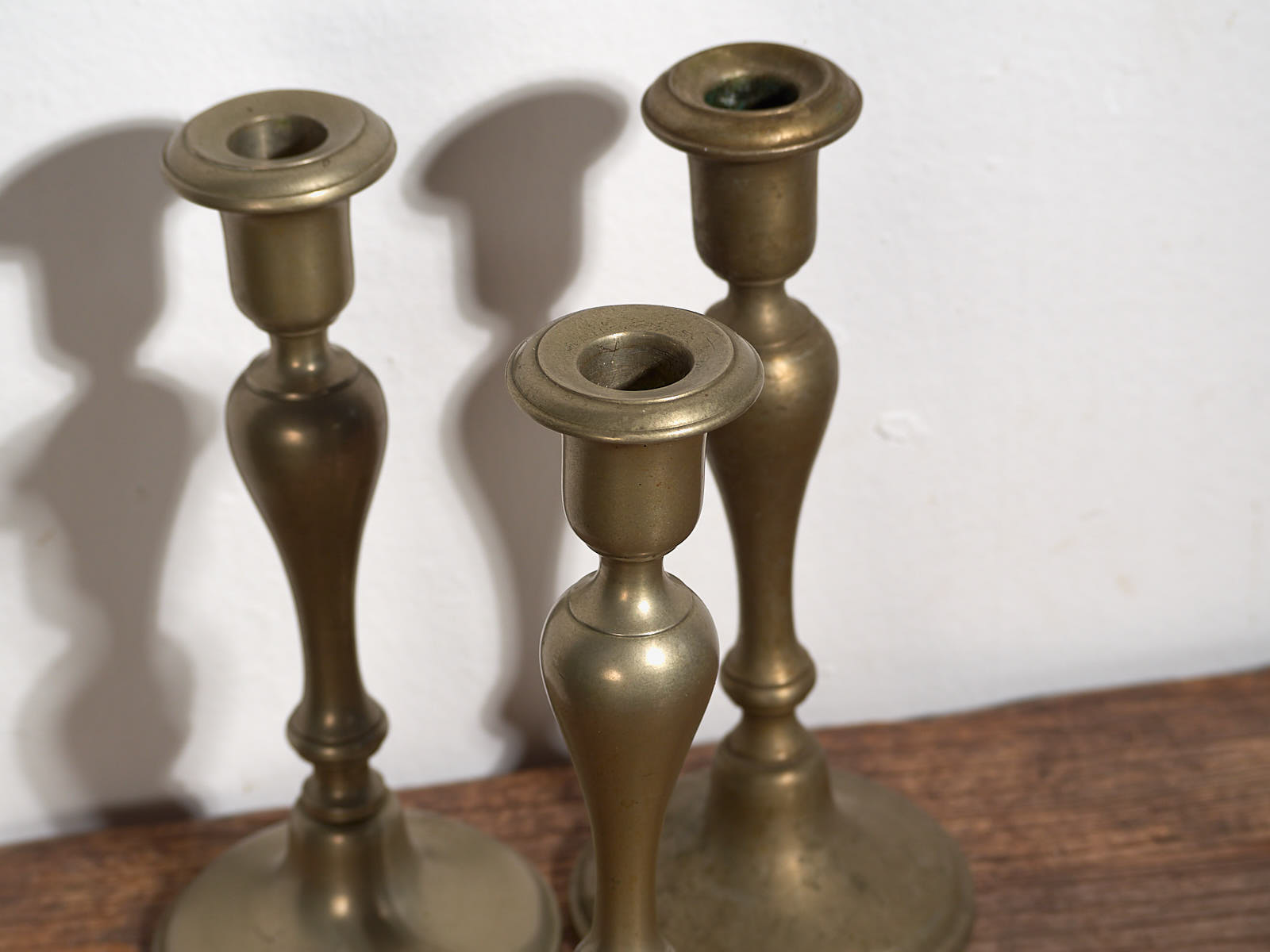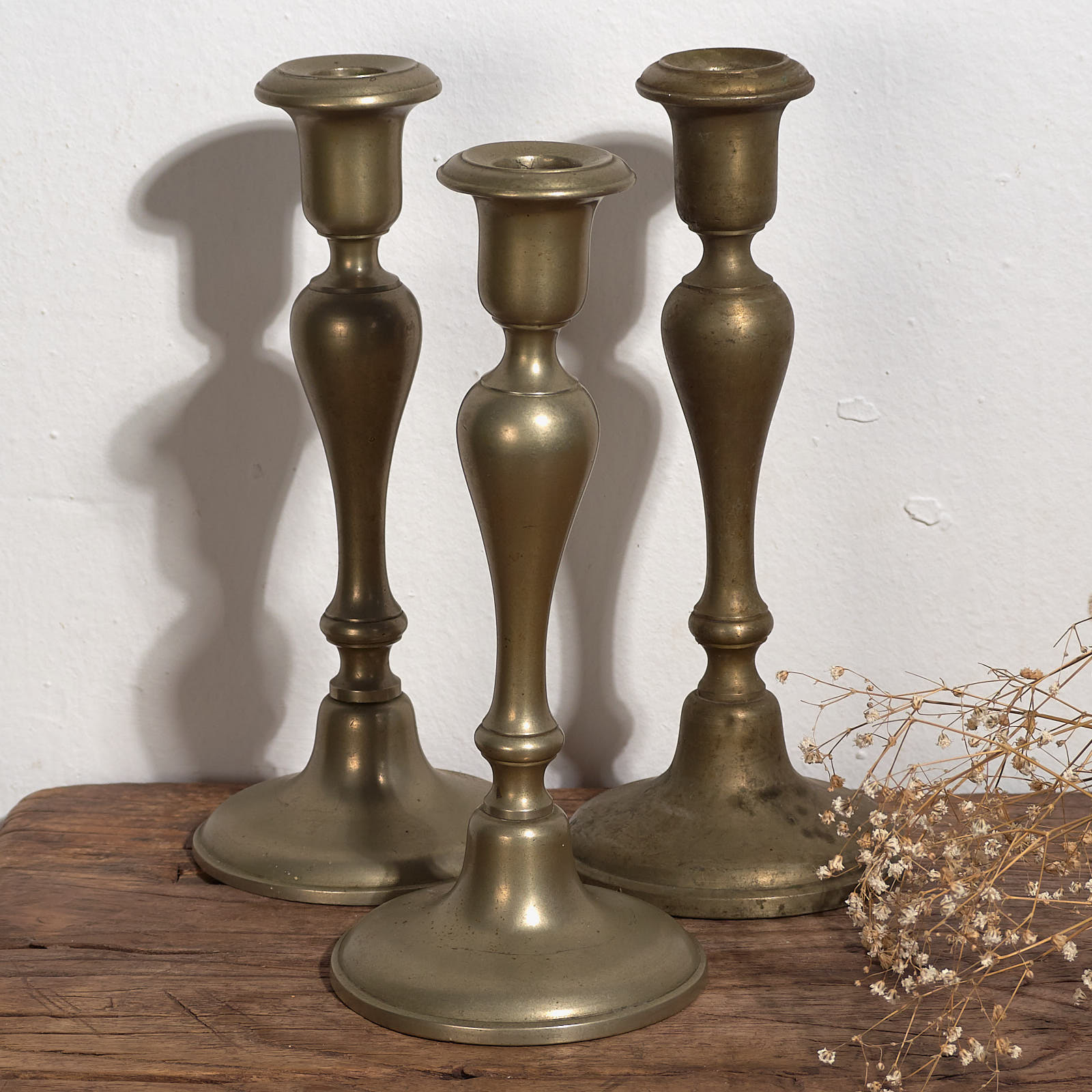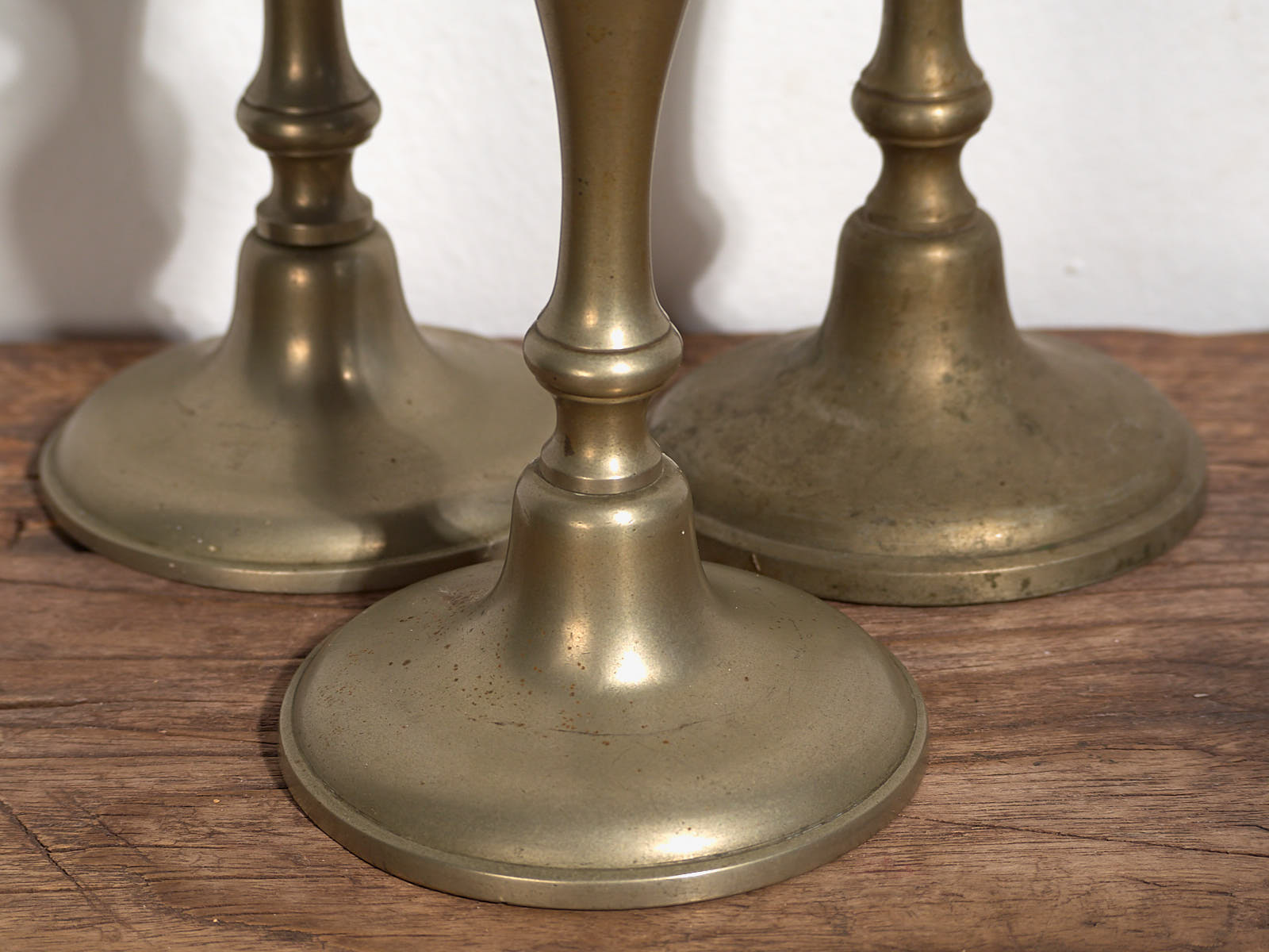 Candeleros antiguos de latón cromado (c.1900). Conjunto de 3 piezas.