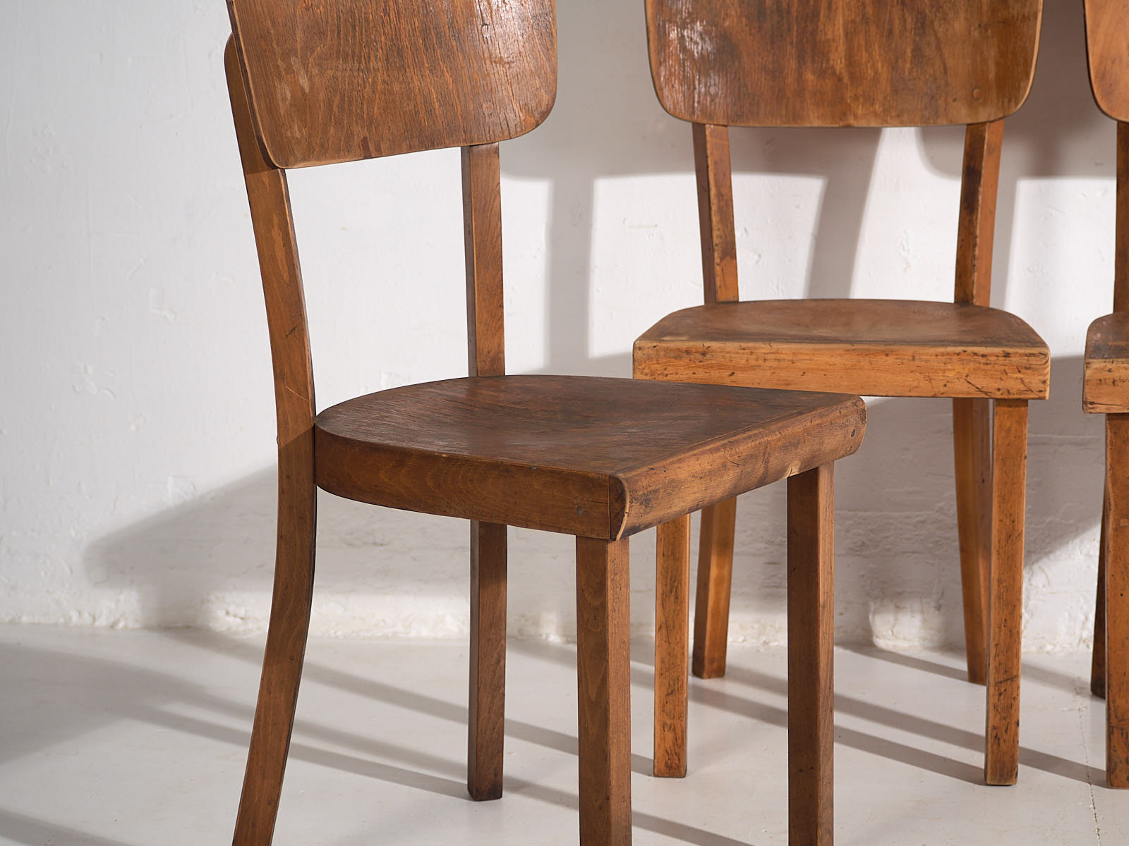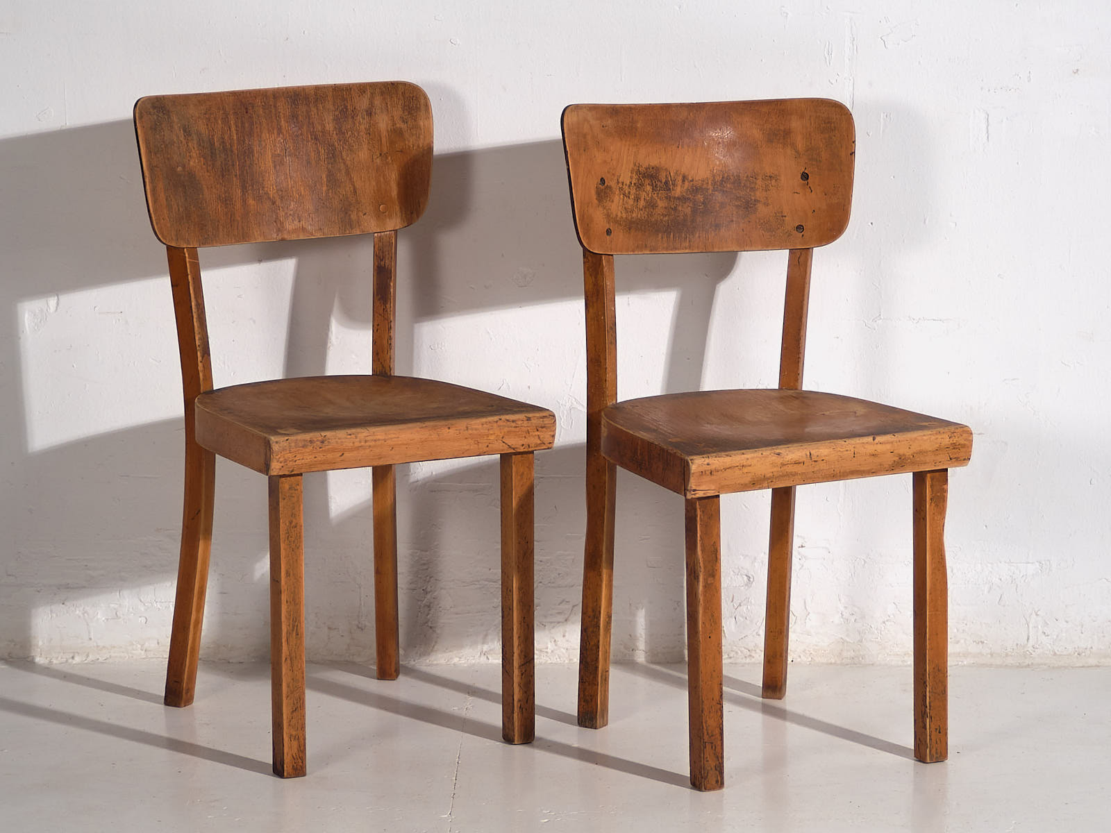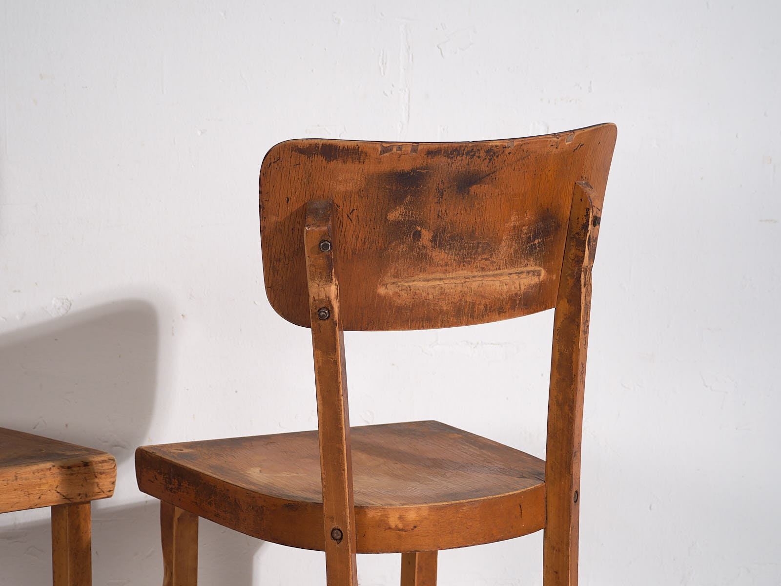 - Una de las sillas conserva el sello original de TON, la reconocida empresa de la República Checa que heredó la tradición de los hermanos Thonet, pioneros en la fabricación de muebles de madera curvada.