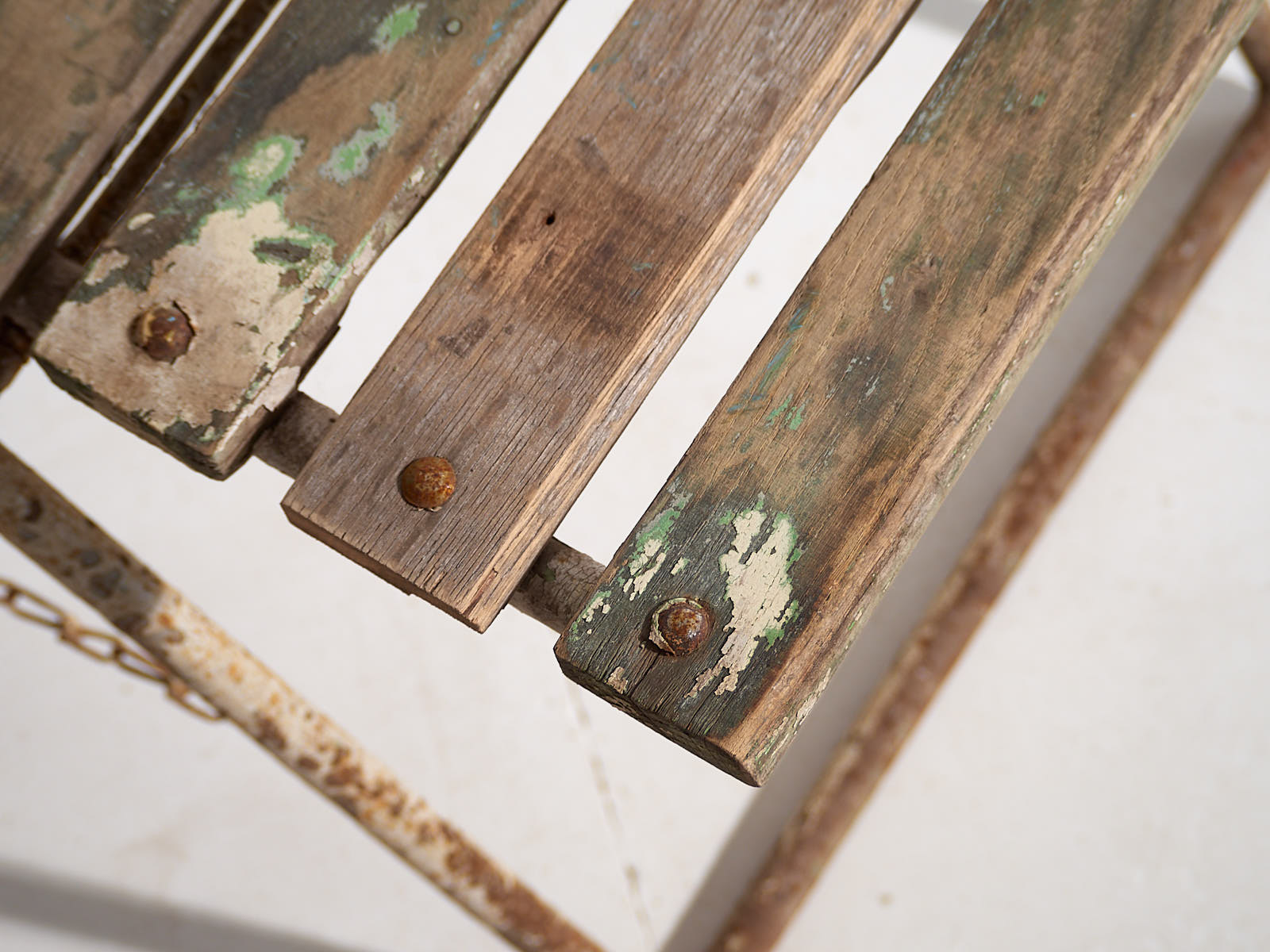 Dale un punto de originalidad a tu casa con una pieza única, que se fusiona con el estilo contemporáneo aportando personalidad a tu casa. Este conjunto de sillas plegables de jardín puede combinarlo con alguno de nuestros aparadores o con nuestras mesas bajas antiguas disponibles.