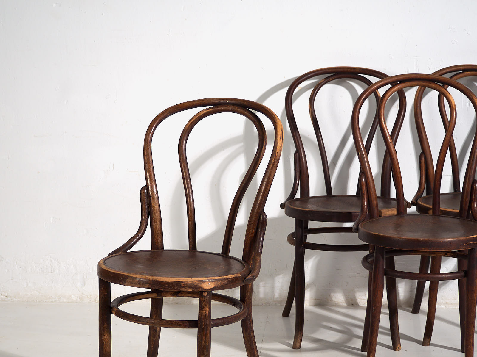 Son, sin duda alguna, verdaderas sillas Thonet; aunque la mayoría ya no conserva marca ni sello identificatorio, una de ellas aún luce la etiqueta original de Mundus.