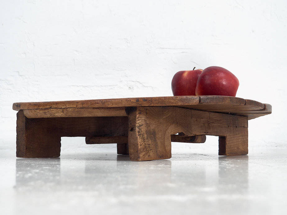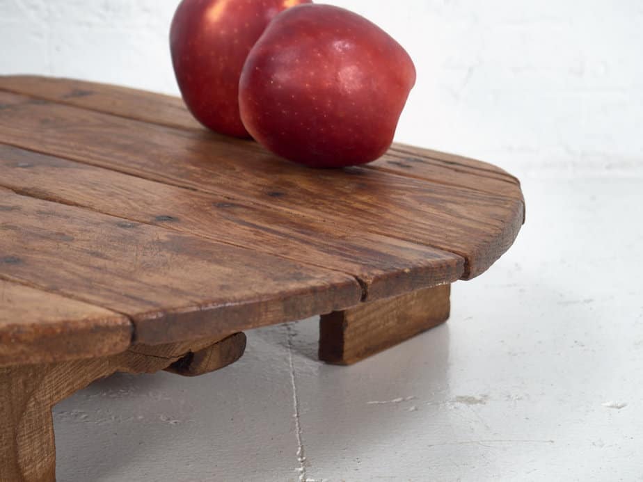 Tabla de cortar quesos antigua redonda con patas de madera (Francia, c.1920)