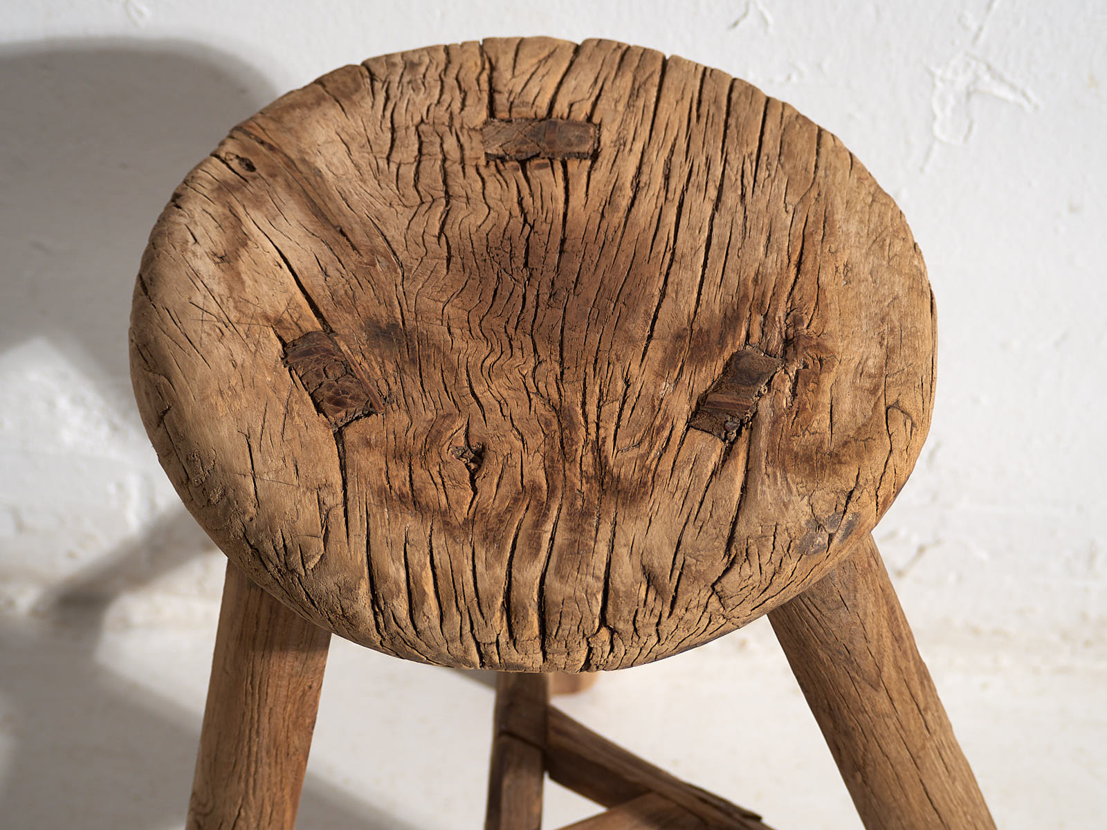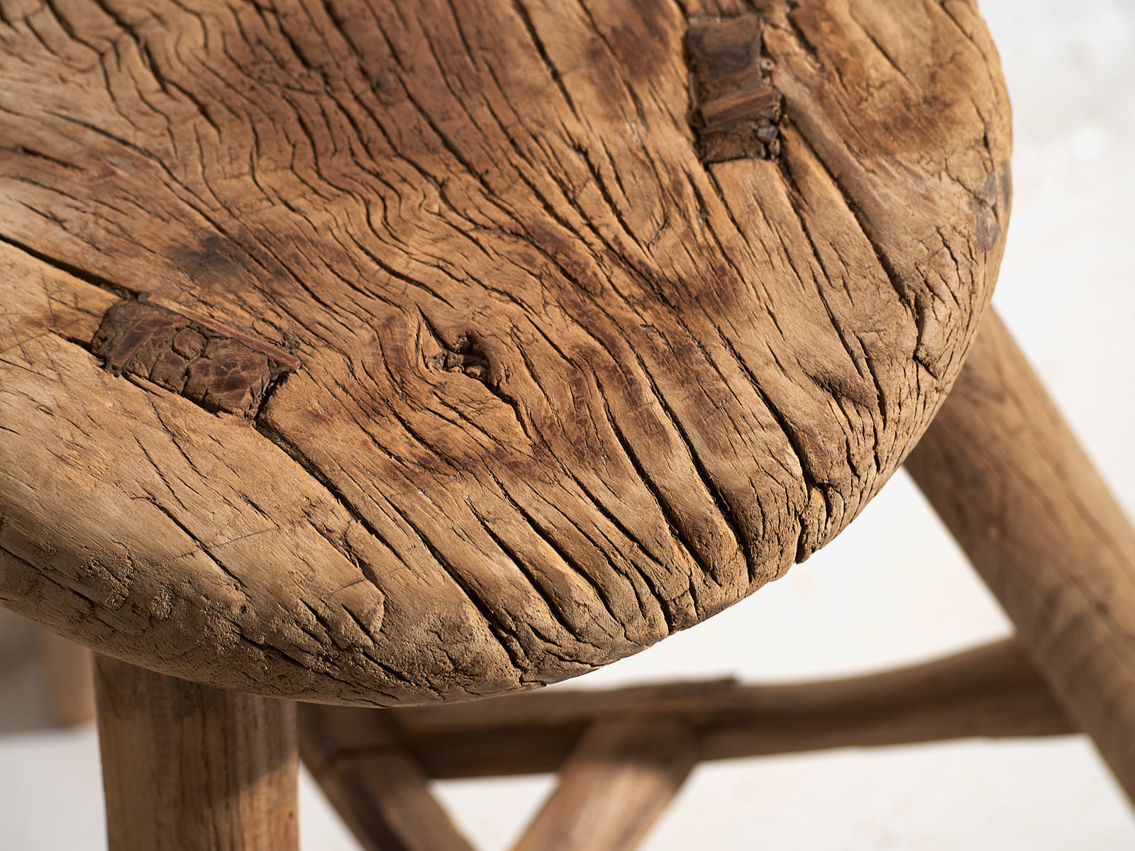 Nuestro antiguo taburete primitivo es una pieza única que destaca por: