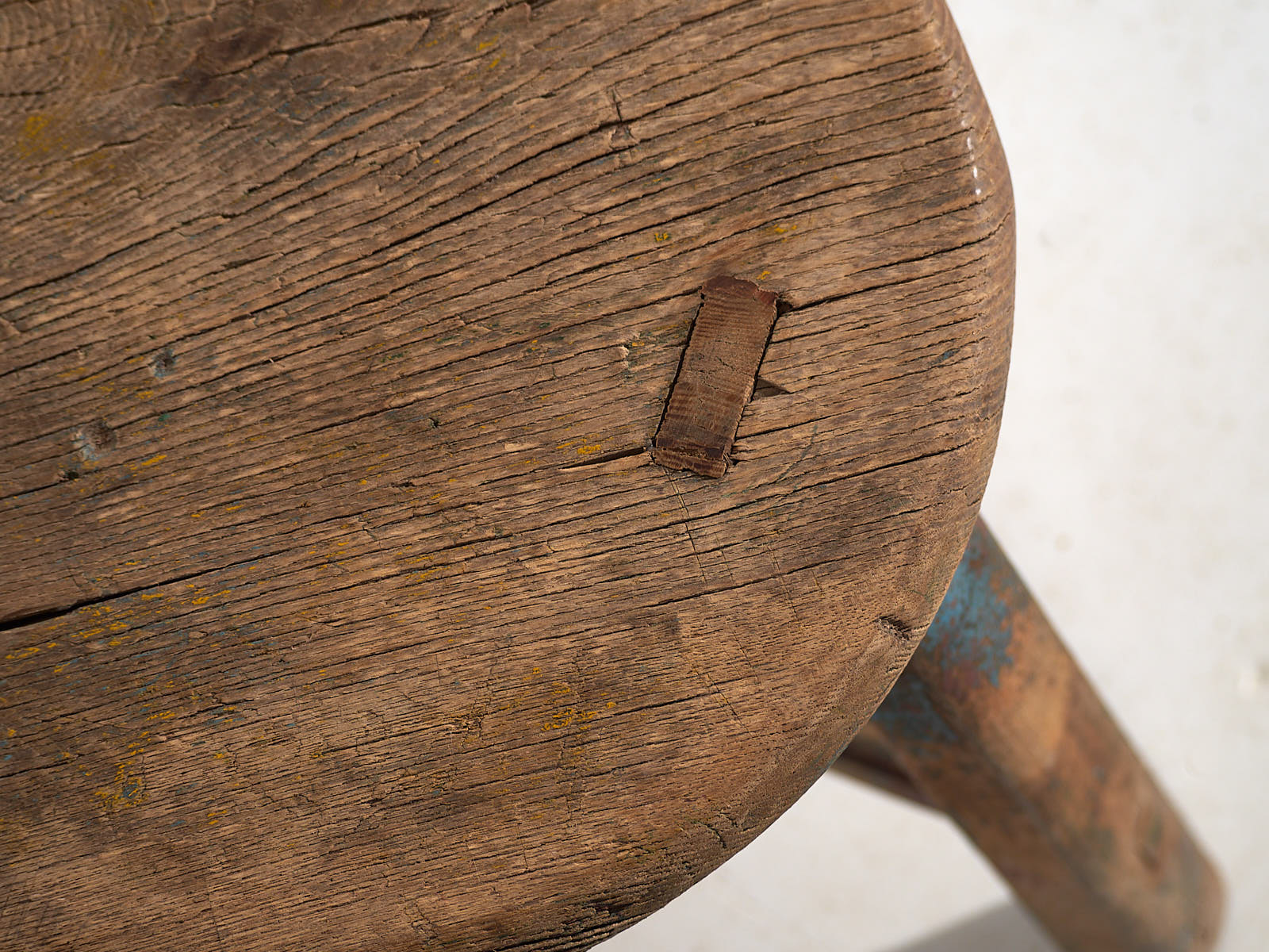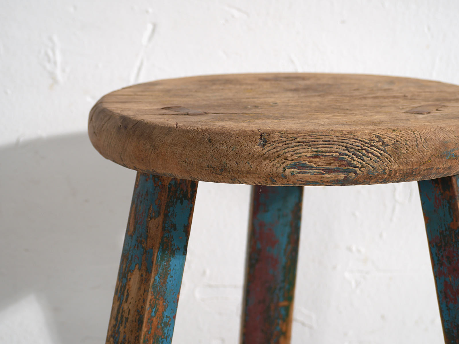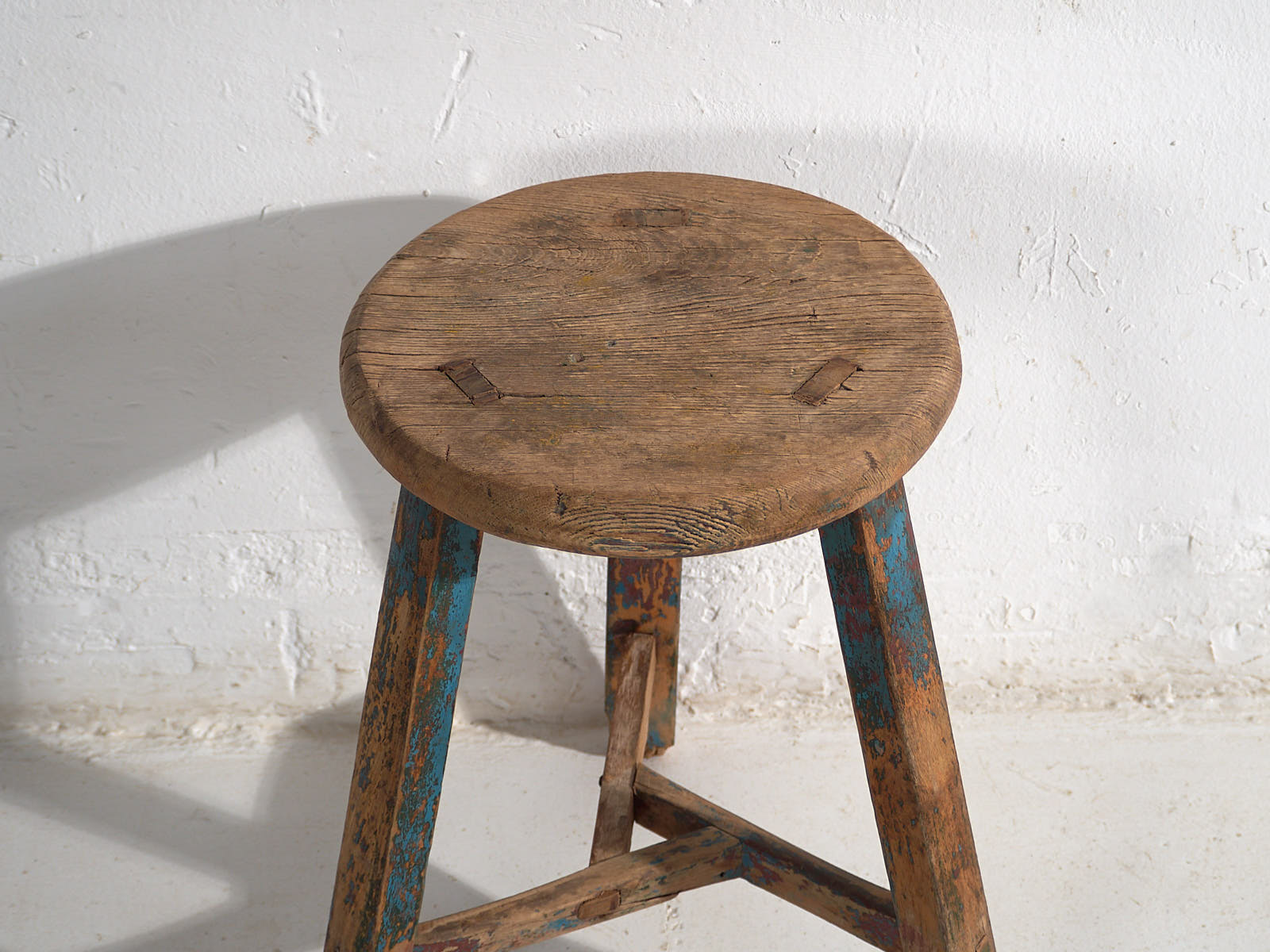 Taburete antiguo con pátina de color azul cielo (c.1900)